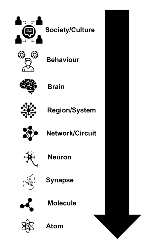 Take a look at Fig. 9 below, where we present the different levels of abstraction in which a neurological or psychological phenomenon can be studied.